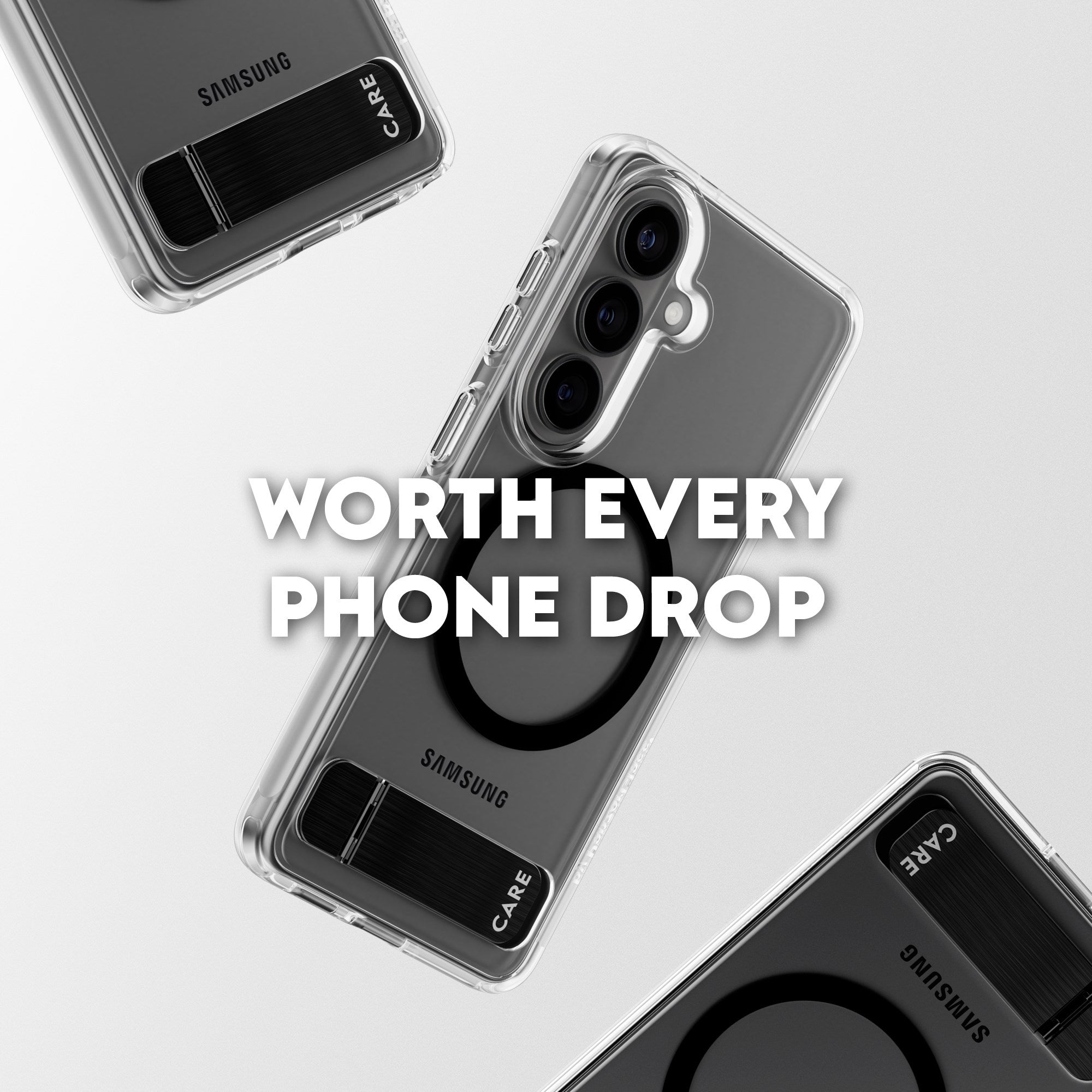 One of our most anticipated new products is finally available! Every angle and corner has been drop-tested at 3.6 meters. Made from recycled plastic, this case offers phenomenal protection, Qi compatible, and includes our 1 Year Anti-Yellowing guarantee – no questions asked. This slim, light-weight protective kickstand case offers everything you want is a phone case. It’s practical design features a versatile kickstand for hands-free viewing, both vertical and horizontal. Now you – or your kids – can FaceTime, stream series, watch movies, and do yoga with ease, any where, any time … and hands free. It even includes enhanced camera protection to safeguard your selfies and photos. DARE TO CARE CARE is a playful and protective international tech and lifestyle brand featuring a range of products created using the highest quality materials and influenced by fashion, art, and music. We care about people and the world we live in. We care about sustainability and self-expression. And we care about tech and extending its lifetime. So protect your tech in style and show the world you CARE.