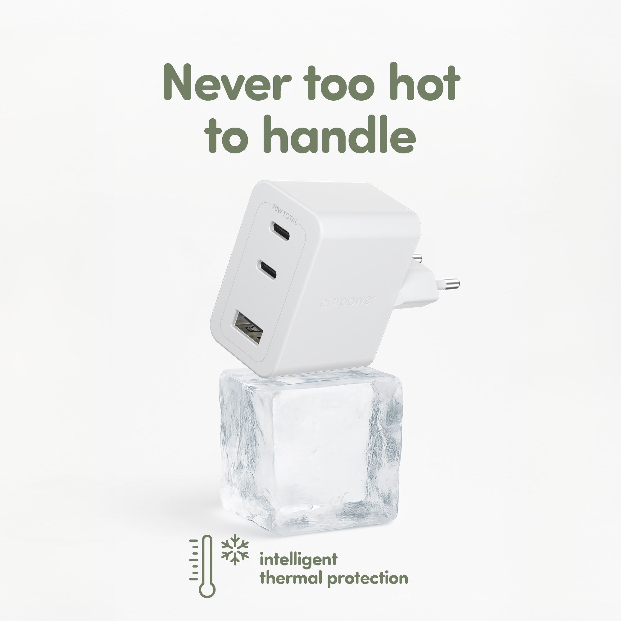 empower™ by PanzerGlass® Turbo 70W Multiple Charger incl. 2 x USB-C + USB-A | EU Plug | Silver White
